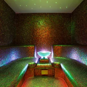 Einige Zimmer verfügen über einen Schrank, ein Sofa und Ausstattung zur Kaffee- & Teezubereitung sowie auch ein privates Bad. Diese Zimmer haben Holzböden. Die Badezimmer bieten Annehmlichkeiten wie einen Haartrockner und Toilettenartikel sowie ein türkisches Dampfbad und eine Sauna. Viele Zimmer überblicken die Berge.